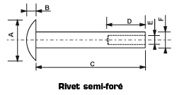 The buck-tail is squeezed until it is flattened and enlarged, to fasten the material to be riveted together : this process is called riveting.